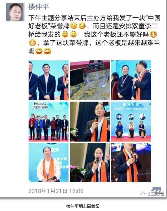 “雙童”李二橋分享道:“在高速變化的時(shí)代之下,不同背景和年齡段的員工對(duì)心目中的好公司是有不同訴求的。新一代員工除了關(guān)注薪資之外,更多追求晉升通道,追求個(gè)性和快樂(lè)。除此之外,更多的員工衡量公司好壞的標(biāo)準(zhǔn)是公司能否提供實(shí)現(xiàn)自己能力的平臺(tái)。因此,“雙童”也一直在致力于打造平臺(tái),實(shí)施增量激勵(lì),幫助員工成長(zhǎng),在共同追求中形成一致的價(jià)值和理念認(rèn)同。”分享結(jié)束后,“雙童”李二橋給樓總頒發(fā)了 “中國(guó)好老板”榮譽(yù)牌,樓總也打趣道這個(gè)老板是越來(lái)越難當(dāng)啦!