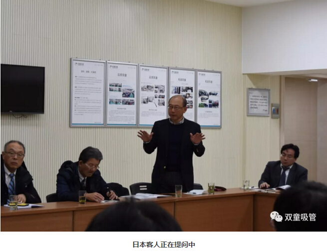 在提問環(huán)節(jié)中,日本客人對在場的“雙童”員工拋出了問題:你認為“雙童”有哪些較好和嚴格的地方?
