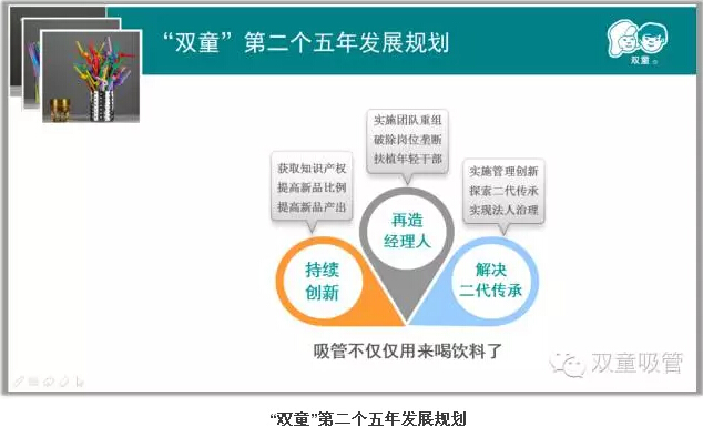 通過歷次變革與創(chuàng)新,“雙童”成功擺脫了薄利多銷的粗放經(jīng)營,轉(zhuǎn)型成為一家互聯(lián)網(wǎng)創(chuàng)新企業(yè),改變了大家對吸管行業(yè) “低、小、散、弱”的傳統(tǒng)認(rèn)知,改變了吸管行業(yè)的傳統(tǒng)發(fā)展方式,促進(jìn)了整個吸管行業(yè)的產(chǎn)業(yè)鏈升級!