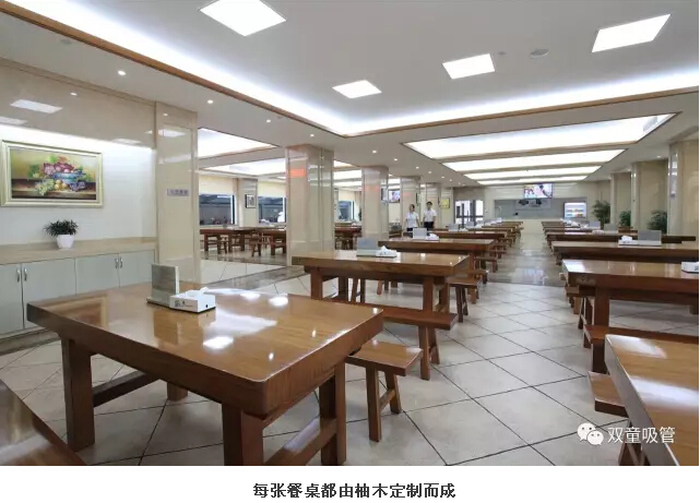 優(yōu)質(zhì)硬件是保障優(yōu)質(zhì)餐飲的前提,所以,“雙童”五星級(jí)員工餐廳內(nèi)的設(shè)施都配備了最好的硬件,以保障餐飲的品質(zhì)!就拿大家熱議的員工餐廳這張桌子來說,一張就要15000元,餐廳內(nèi)光是餐桌的總投資就達(dá)到70多萬。每一張桌子重達(dá)四五百斤,是樓仲平特地去東陽市中國紅木家具城挑選由“木中之王”的柚木(也稱胭脂樹)定制而成,特點(diǎn)是紋理線條優(yōu)美,所以每張餐桌的顏色都很漂亮,十分細(xì)膩!
