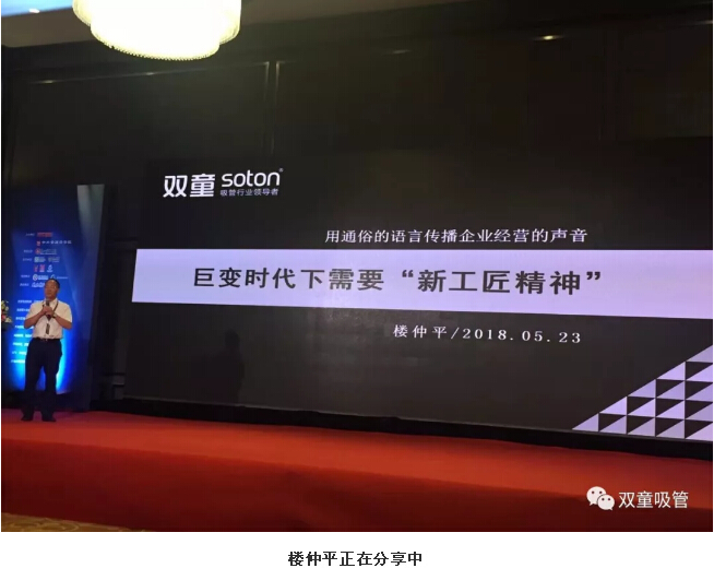 頒獎(jiǎng)盛會(huì)后,“雙童”樓仲平在“中國(guó)制造·隱形冠軍”年度峰會(huì)上做了《巨變時(shí)代下需要“新工匠精神”》的主題分享。