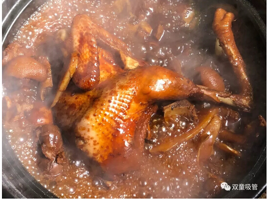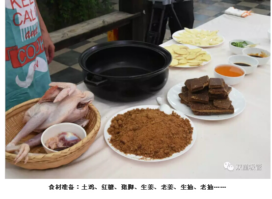 這道菜做起來(lái)可不簡(jiǎn)單哦!除了有雞、紅糖、豬腳等主料外,還需加入七種調(diào)料,經(jīng)過(guò)12道工序后,用土鍋柴火燒制,并用稻草灰蓋鍋密封才能烹飪出更好的味道。 經(jīng)過(guò)大半天的燒制,“義烏紅糖雞”大功告成,色香味俱全!(PS:嫩雞至少要燉1個(gè)小時(shí),老母雞至少要燉2—3個(gè)小時(shí))