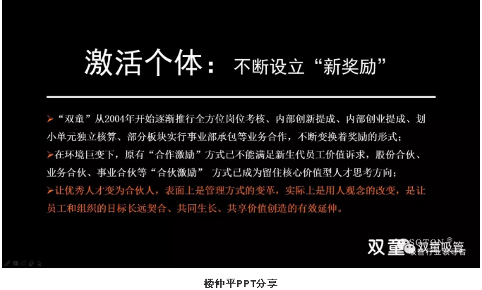 “所以,我們基本不用空降兵。這批人是我?guī)С鰜?lái)的,就深受我的影響,在乎工作、可以放下身段,整體素質(zhì)遠(yuǎn)超第一代管理者。這批第二代管理者培養(yǎng)起來(lái)后,至少打開(kāi)了‘雙童’未來(lái)二十多年企業(yè)持續(xù)發(fā)展的窗口?!?/span>
