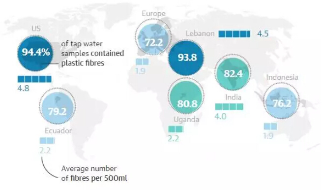 ▲最新調(diào)查發(fā)現(xiàn),全球各地多國自來水中都存在微塑料污染。圖據(jù)《衛(wèi)報(bào)》