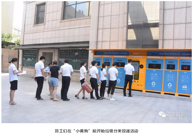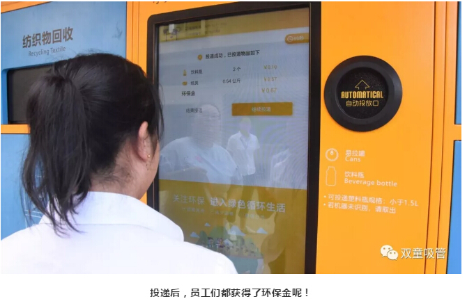 以后“雙童”人可以把各種垃圾進(jìn)行分類“投喂”給廠區(qū)里的“小黃狗”,不僅促進(jìn)了環(huán)保,還可根據(jù)投入垃圾的數(shù)量和種類,獲得對(duì)應(yīng)金額的鼓勵(lì)金哦!聽(tīng)到這,大家是不是有些羨慕“雙童”人呢?