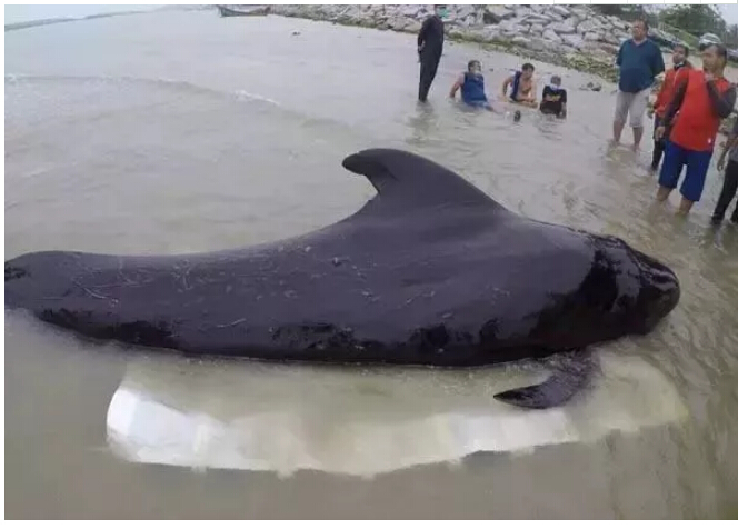 這只小領(lǐng)航鯨艱難吐出5個(gè)塑料袋,