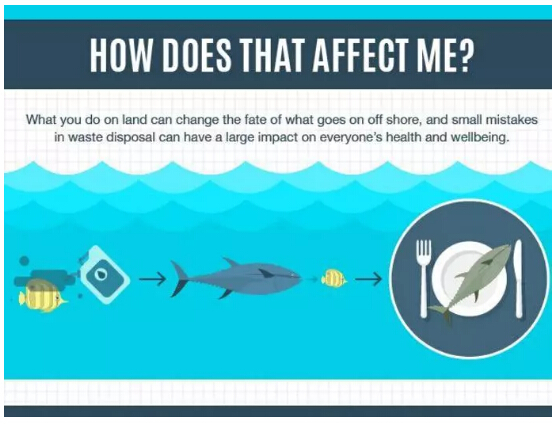 據(jù)調(diào)查,海鮮、牛肉、海鹽、自來水等都有被塑料污染的情況。 無法被分解的塑料進(jìn)入海洋生物體內(nèi),沉積到血液、脂肪、肌肉里,最后又被人類吃下了肚。