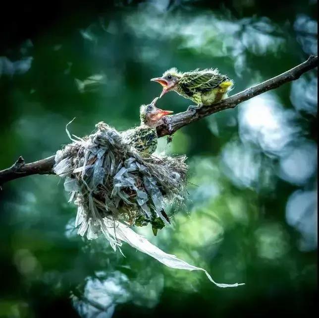 最近,攝影愛好者在遼寧省義縣一村邊的樹林里發(fā)現(xiàn)了一個(gè)黃鸝鳥巢,鳥巢底部一塊塑料垃圾隨風(fēng)飄搖,極不協(xié)調(diào)。