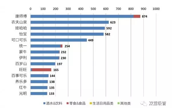 而這些品牌我們就非常熟悉了,康師傅、農(nóng)夫山泉、娃哈哈、怡寶、可口可樂等都“榜上有名”!