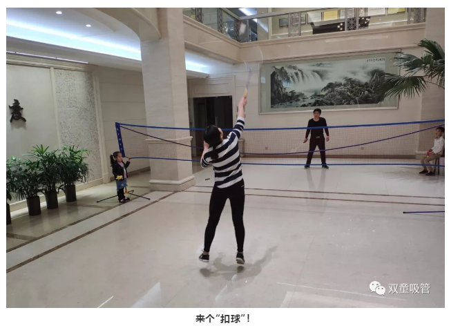 在熟悉比賽規(guī)則后,第一組選手閃亮登場(chǎng)!沒想到一開場(chǎng)就來了個(gè)“霸氣扣球”,兩位選手你一球他一球,把每個(gè)球都打得強(qiáng)勁飛舞!邊上還沒上場(chǎng)的小伙伴們,也蠢蠢欲試?yán)玻?/span>
