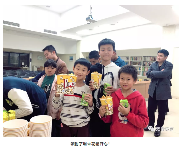 觀影套餐領(lǐng)取完畢之后,大家依次入座,電影馬上開始啦!這次“雙童”影院放映的是《西虹市首富》——該影片講述的是業(yè)余足球隊的守門員王多魚,因比賽失利被開除離隊,卻意外獲得大筆財富,由此引發(fā)一系列令人哭笑不得的事件 。