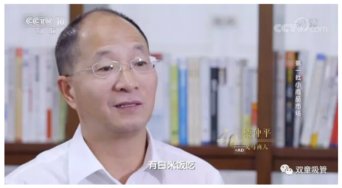 2018年12月19日晚,央視CCTV—10 播出了大型紀(jì)錄片《四十年四十個第一》第十五集《第一批小商品市場》!其中,講述了以“雙童”樓仲平為代表的幾位義烏商人的發(fā)展故事,講述了義烏在針頭線腦中發(fā)家致富,從貧瘠小縣城發(fā)展為全球小商品市場的蝶變故事!