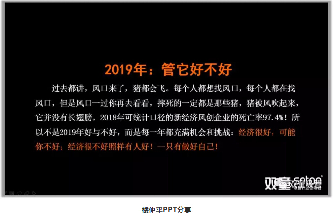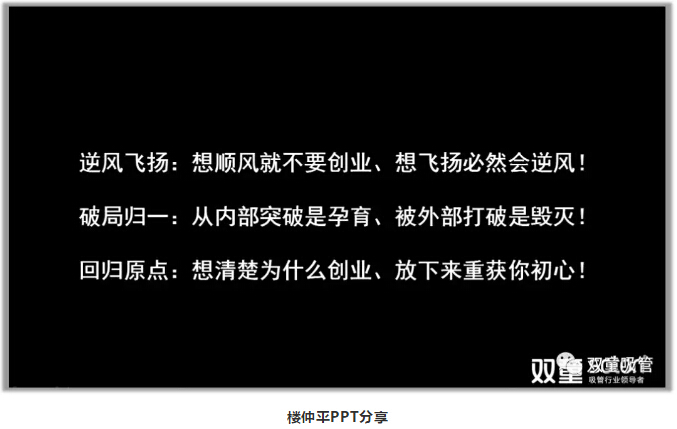 在年會中有一項(xiàng)議程,就是由“雙童”樓仲平為大家?guī)怼毒拮儠r(shí)代下企業(yè)生存的“慎”與“流”》課程分享!