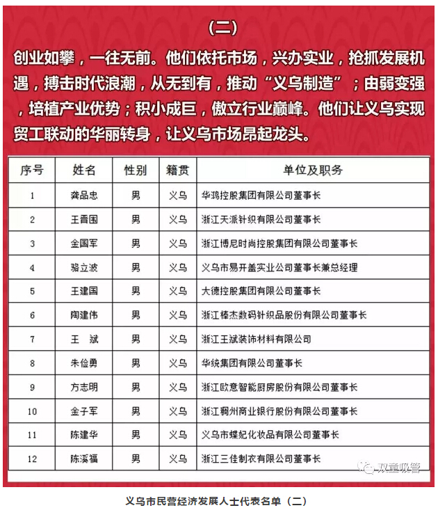 同時,此次大會還對以下的義烏市民營經(jīng)濟發(fā)展代表人士進行了頒獎表彰!