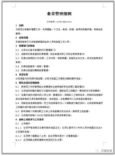 “雙童”食堂管理細則,涉及到餐飲管理的各個方面