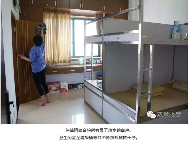 早在2003年,“雙童”建設(shè)新廠房時(shí),當(dāng)家人樓仲平就考慮到員工對(duì)住宿、環(huán)境等方面的需求會(huì)越來越高,所以,他下定決心,按三星級(jí)標(biāo)準(zhǔn)來投入建設(shè)員工寢室!