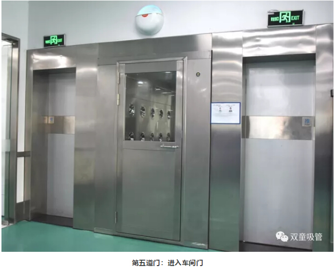 5.員工們風(fēng)淋后經(jīng)過第五道車間入口門,進(jìn)入車間進(jìn)行生產(chǎn)工作。