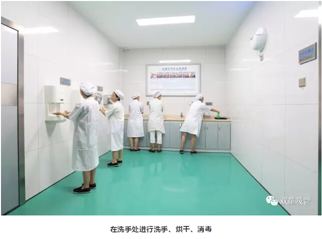 除了生產(chǎn)現(xiàn)場的工作環(huán)境之外,進(jìn)入車間前的一系列衛(wèi)生防護(hù)標(biāo)準(zhǔn)也至關(guān)重要!在“雙童”,每位員工在進(jìn)入車間前,都要按照規(guī)范進(jìn)行消毒防護(hù)措施,過五道門六道關(guān)卡才能進(jìn)入車間工作: