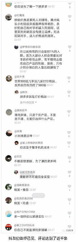 此段視頻一發(fā)布后,在四個(gè)小時(shí)內(nèi)點(diǎn)贊量就直沖1萬!抖友們圍繞“‘薄利多銷’還行的通嗎?”這個(gè)話題進(jìn)行了激烈的辯論??纯?,這哪是評(píng)論區(qū)啊,這明明是辯論賽現(xiàn)場(chǎng)呀!
