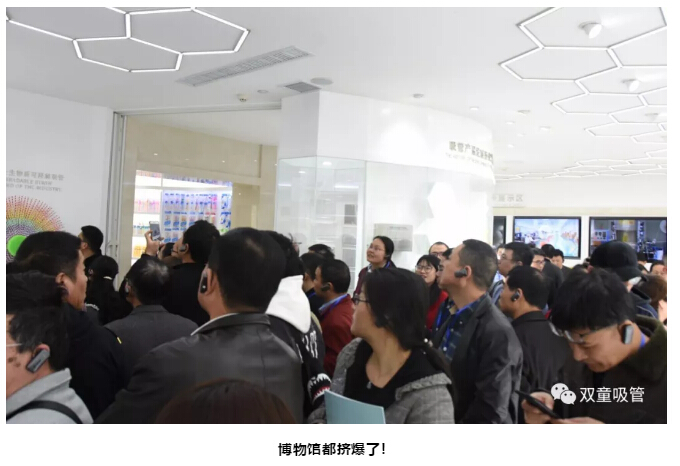 隨后,“雙童”李二橋帶領(lǐng)大家來(lái)到中國(guó)吸管博物館。大家一起參觀了產(chǎn)品發(fā)展歷史展示區(qū)、吸管生產(chǎn)技術(shù)展示區(qū)、吸管產(chǎn)品形態(tài)展示區(qū)等各類(lèi)吸管的展示區(qū)域,了解吸管的發(fā)展與變遷,琳瑯滿(mǎn)目的創(chuàng)新吸管讓大家看花了眼!