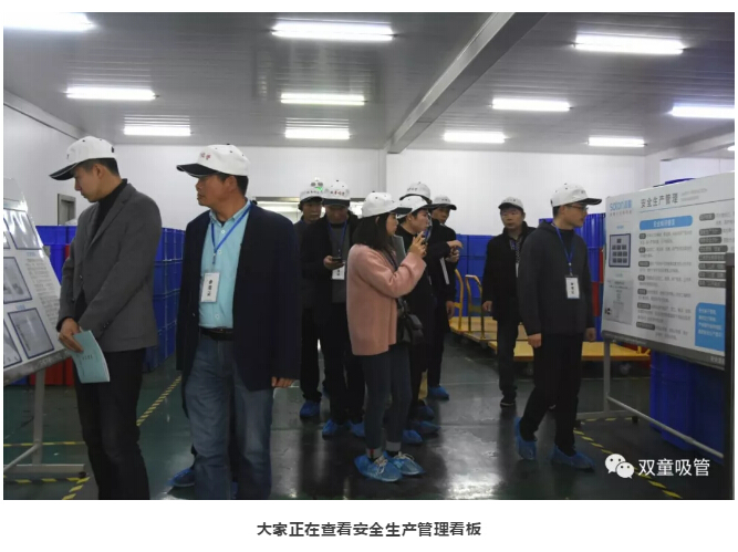 緊接著,“雙童”李二橋也帶大家來(lái)到生產(chǎn)車(chē)間參觀產(chǎn)品生產(chǎn)線(xiàn),實(shí)地考察“雙童”的安全生產(chǎn)工作。