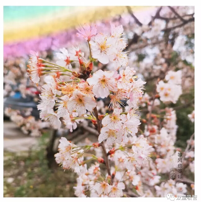 瞧!樹枝上嬌俏可愛的櫻桃花層層疊疊,宛如一片粉色花海。
