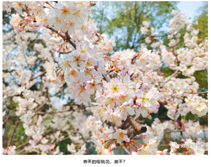 春天的“雙童”,鳥鳴花香,春色醉人! 桃花、 玉蘭花、茶花……真是“百般紅紫斗芳菲”呀!