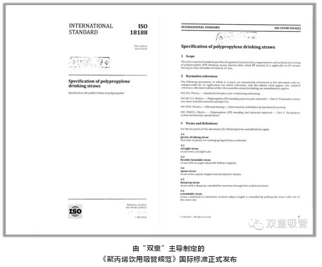 作為全球吸管行業(yè)領(lǐng)導(dǎo)者,這些年義烏市雙童日用品有限公司先后承擔(dān)聚乳酸冷飲吸管中國輕工行業(yè)標(biāo)準(zhǔn)、聚丙烯飲用吸管國家標(biāo)準(zhǔn)和聚丙烯飲用吸管規(guī)范ISO國際標(biāo)準(zhǔn)的起草編制工作。全球吸管行業(yè)國際標(biāo)準(zhǔn)的相關(guān)組織要求、生產(chǎn)過程、規(guī)則驗收、依據(jù)評判等絕大部分標(biāo)準(zhǔn)條文均來自義烏市雙童日用品有限公司。