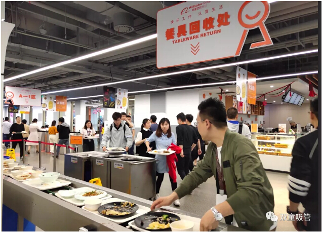 杭州西溪總部的阿里食堂一共有5個(gè)食堂,每天有2萬余人在這里就餐!