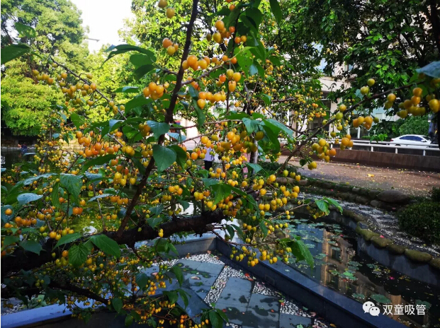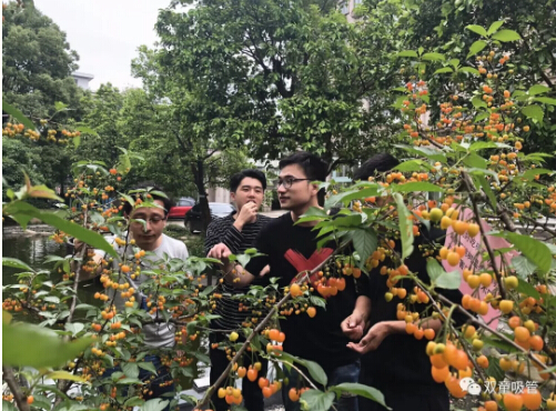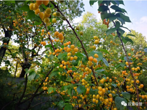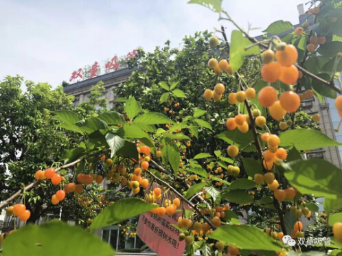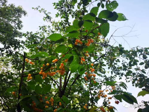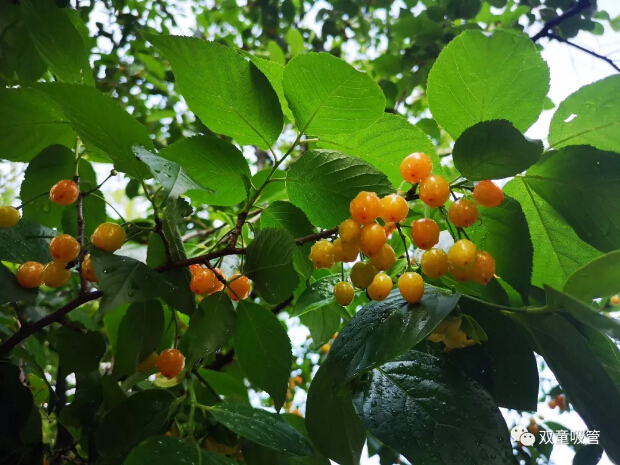 看!“雙童”的這幾棵櫻桃樹上,掛滿了紅色的果實,點綴在繁密的綠葉間,令人垂涎欲滴!