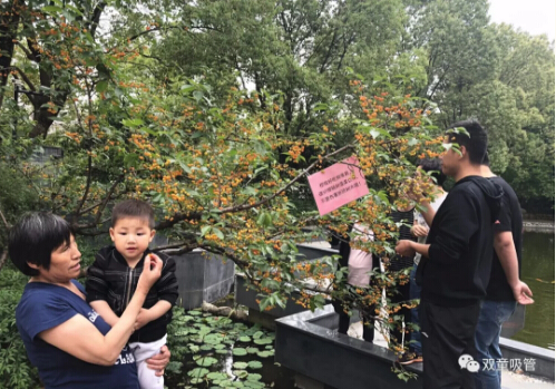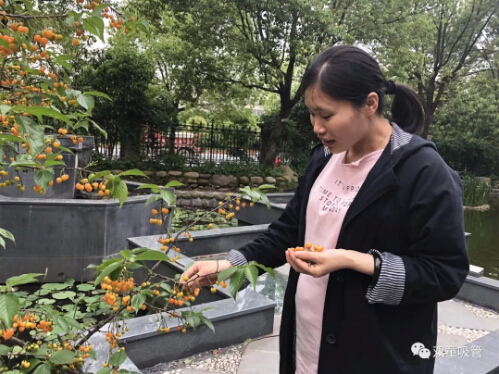 咦?櫻桃樹上除了有櫻桃,還有一塊牌子呢!原來,為了讓櫻桃樹更好的生長,“雙童人”在每棵櫻桃樹上都掛了標語牌,提醒大家在摘櫻桃時不要折損傷害櫻桃樹。