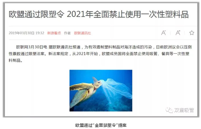 由于塑料制品對(duì)環(huán)境和動(dòng)物造成的傷害,全球掀起了限塑熱潮!世界各國也都發(fā)起了“最后一根塑料吸管”運(yùn)動(dòng),越來越多的機(jī)構(gòu)都開始拒用塑料吸管……