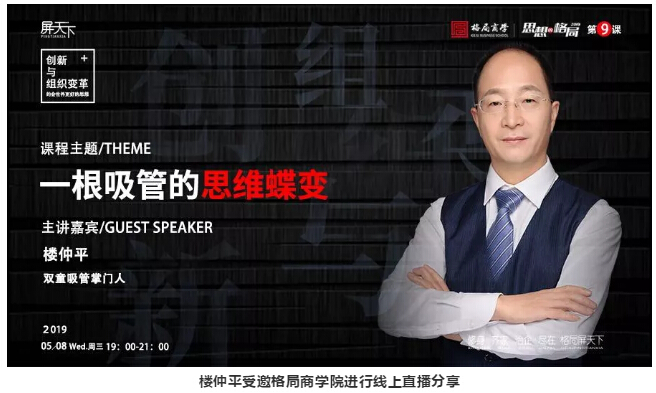 5月8日,“雙童”樓仲平受邀在格局商學最核心的板塊《思想的格局2019》,以全新的線上課程直播的形式分享《一根吸管的思維蝶變》,引導大家突破表象認知,理解底層邏輯,用互聯(lián)網(wǎng)的思維去理解產(chǎn)品,并在線與萬名學員進行即時互動與反饋!