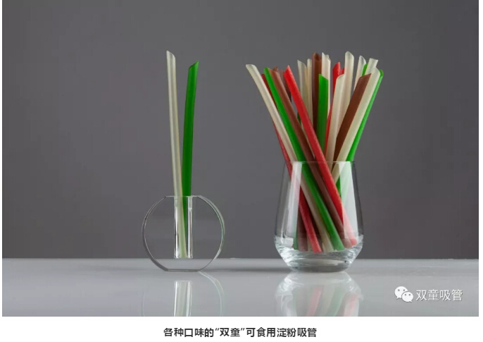 比如:把最容易丟棄和不能回收利用的塑料吸管改成“雙童”可食用淀粉吸管!