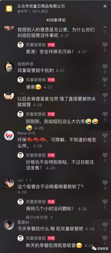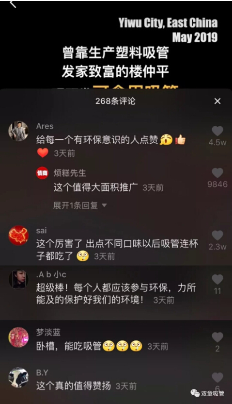 5月以來,吸管妞也在抖音發(fā)布了關(guān)于“雙童”可食用淀粉吸管的視頻,獲得了百萬閱讀和上萬點贊,也在抖音上引起了激烈的討論,可謂一管激起千層浪!一起來看看吧!