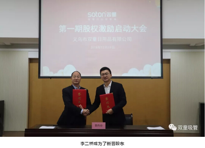 2001年9月,李二橋經(jīng)哥哥介紹成為了“雙童”的一名“理管工”。正是從理管工開始努力,他厚積薄發(fā),先后任職車間統(tǒng)計(jì)員、車間班組長(zhǎng)、品管部主任、總經(jīng)理助理、總經(jīng)理等崗位。2018年12月,他在股權(quán)激勵(lì)大會(huì)上接過(guò)了股權(quán)激勵(lì)證書,晉升為公司股東,完成了從打工仔到“義烏勵(lì)志哥”的完美蛻變!