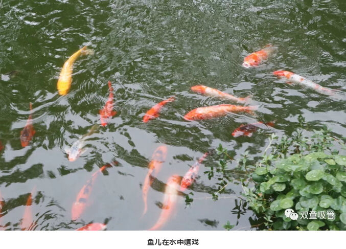 清風吹拂過荷塘,花瓣隨風輕輕搖擺,帶來陣陣荷花獨有的清香。景觀湖中的魚兒成群結隊游動,現(xiàn)場一派生機勃勃的景象。