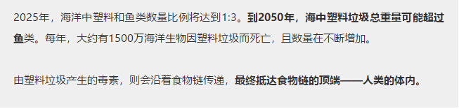 由塑料垃圾產(chǎn)生的毒素,則會沿著食物鏈傳遞,最終抵達(dá)食物鏈的頂端——人類的體內(nèi)。