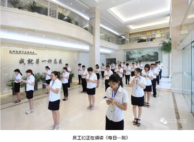 當(dāng)然,“雙童”的這些文化標(biāo)語(yǔ)除了在墻面展示之外,也被收錄到“雙童”企業(yè)文化叢書《每日一則》當(dāng)中,每天誦讀一篇《每日一則》成為“雙童”員工們的必修課,哪怕是在車間里工作的基層員工也是每天雷打不動(dòng)地要誦讀哦!