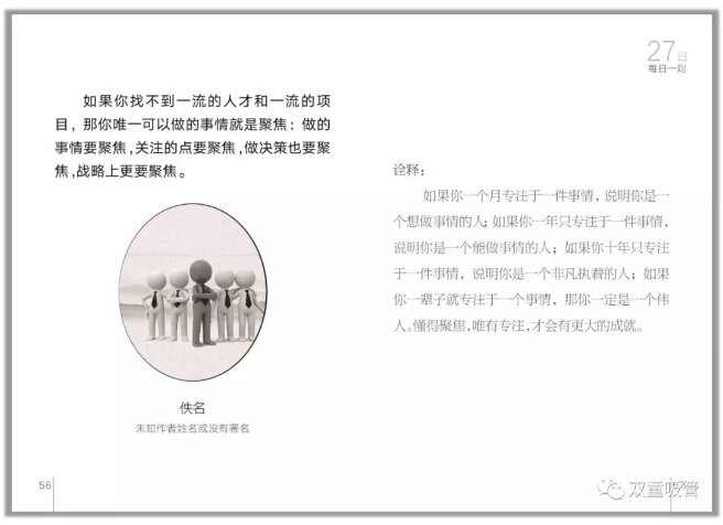 這些文化標(biāo)語(yǔ),可不是隨便找來掛一掛的哦!它們都是從幾千句名人名言、經(jīng)典好書中擇取篩選出來,并經(jīng)過我們的詳細(xì)注釋,成為“雙童”企業(yè)文化的一部分!