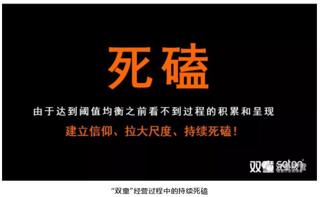 首先,引導大家理解企業(yè)經(jīng)營當中處處都隱含著閾值效應,而閾值擊穿,就是持續(xù)積累下打破原有均衡(邊際效應)而引發(fā)質(zhì)變,用通俗的說法也稱“死磕”。