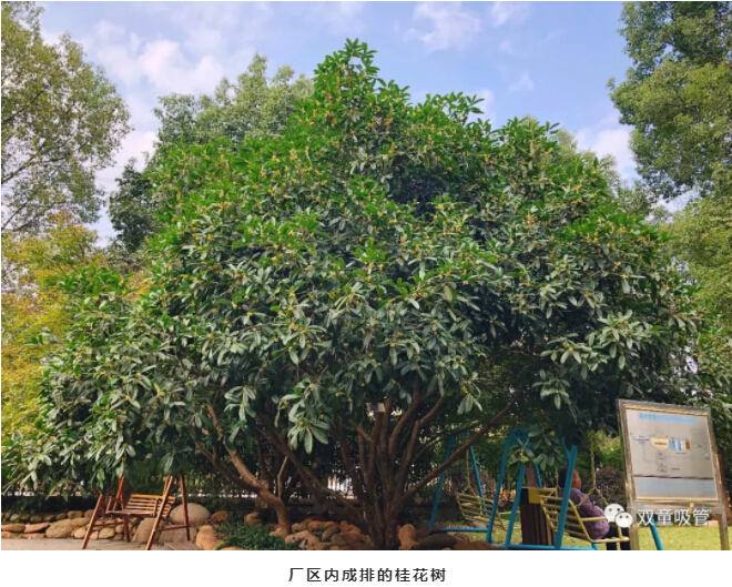 “不是人間種,移從月中來(lái)。廣寒香一點(diǎn),吹得滿山開(kāi)?!?詩(shī)人楊萬(wàn)里這樣贊頌桂花。而在“雙童”,一到秋季,最能夠引人注意的就是盛開(kāi)在廠區(qū)的幾十棵桂花樹(shù)啦!在大門(mén)邊、行政樓前、九樓空中花園內(nèi)……所有的桂花樹(shù)似乎都約好了一般,全部盛開(kāi)了!