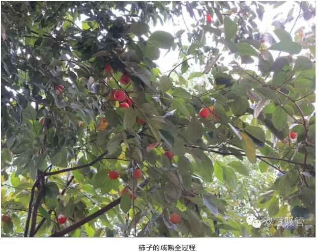 在“雙童”,大家不僅能吃到甜甜的柿子,還能完整的GET到柿子的生長過程,從小小的青嫩果子到豐滿的黃色果實,無論哪個階段,“雙童”的柿子都是相當(dāng)?shù)恼T人哦!