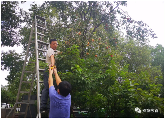 過不了幾天,柿子就熟透了,瞧!紅彤彤的多誘人呀!每年“雙童”的柿子都會拿到食堂,讓大家共享這香甜和豐收的喜悅~