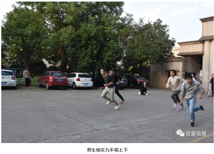 這時(shí),只聽吸管妹妹一聲令下,大家火速?zèng)_出起跑線,瞧!比賽真的超激烈,男生組實(shí)力簡直不相上下!
