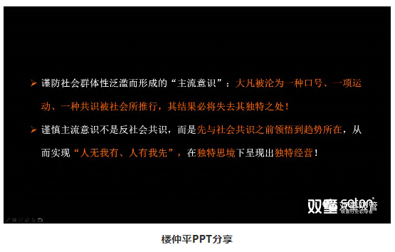 但是,我們一定要理解,謹(jǐn)慎主流意識(shí)并不是反社會(huì)共識(shí),而是先于社會(huì)共識(shí)之前領(lǐng)悟到趨勢(shì)所在,極早作出改變,從而實(shí)現(xiàn)“人無我有、人有我先”,在獨(dú)特思境下呈現(xiàn)出獨(dú)特經(jīng)營(yíng),創(chuàng)造出獨(dú)特的價(jià)值!