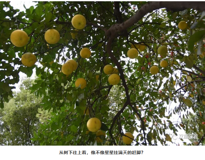 已經(jīng)換裝成功的大柚子像一個(gè)個(gè)小燈籠懸掛枝頭,和青綠的葉子應(yīng)和著,煞是好看!