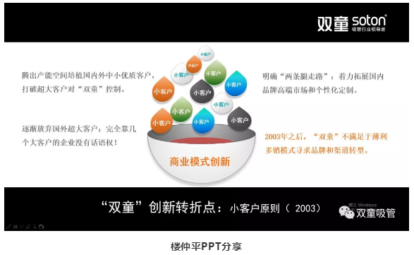 十多年前,當(dāng)別的企業(yè)都忙著擴(kuò)大生產(chǎn)規(guī)模時,“雙童”卻反其道而行之。2003年,我們提出了“小客戶原則”,前后花了5年時間“砍掉”了那些對“雙童”沒有正向價值的大客戶,因為這樣的客戶會導(dǎo)致企業(yè)沒有任何自主權(quán)和定價權(quán),無法形成良性循環(huán)。