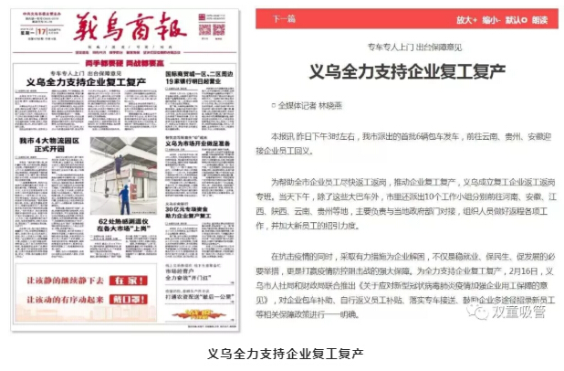義烏市政府對(duì)企業(yè)復(fù)工的大力支持
