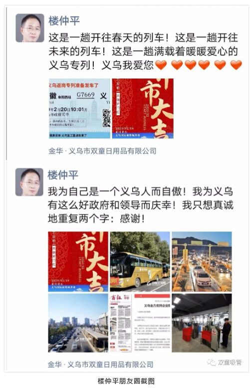 一邊嚴(yán)抓疫情防控,一邊幫助企業(yè)復(fù)工復(fù)產(chǎn)恢復(fù)群眾生活!這就是義烏!“雙童”作為義烏第一批復(fù)工企業(yè),深刻感受到政府在巨大疫情壓力下對(duì)企業(yè)的支持,時(shí)時(shí)刻刻為企業(yè)著想,幫助企業(yè)一起共渡難關(guān)!我們深刻感受到身處義烏的便利和幸福,感謝義烏市政府的支持與幫助,感謝領(lǐng)導(dǎo)的關(guān)心與包容!我們?yōu)榱x烏驕傲!
